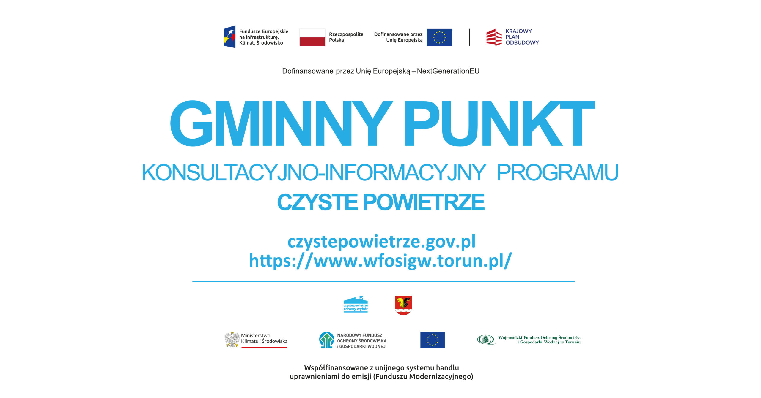 W gminie Włocławek działa Punkt konsultacyjno-informacyjny Rządowego Programu Priorytetowego Czyste Powietrze. Punkt czynny jest od poniedziałku do czwartku w godzinach od 13:00 do 15:00 , w piątki od 12:00 do 14:00 i mieści się w siedzibie Urzędu Gminy Włocławek, ul. Królewiecka 7, 87-800 Włocławek, tel. 54 230 53 33.